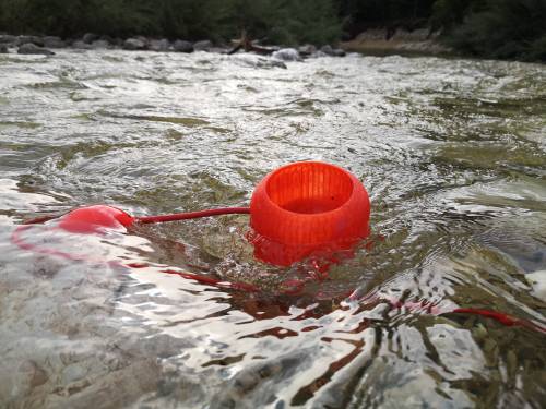Babble v.1 is a temporary intervention in the landscape, 8 hydro-phonic bowls - these are small red sculptures that host piezoelectric devices that allow the micro-vibrations to be collected at proximity, amplifying the surface sounds of the river's flow, babbling and burbling over fallen trees and rocks. These devices were able to isolate and remix the chatter of the river in real-time - her flow becomes a stream on the internet - replaying the idea of the continuous flow in cyberspace.