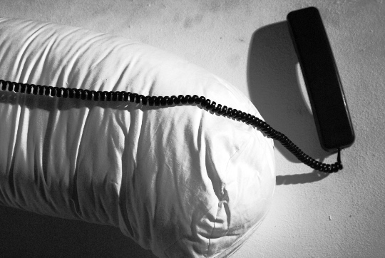 Sound-sculpture (bolster pillow, telephone receiver, electronics)