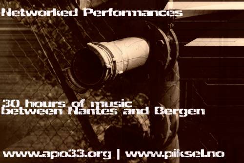 A chance to experience new forms of music created through Networked Performanes. 8 hours of intensive live audio flowing via Nantes to Bergen over 3 days of the Piksel Festival. more than 30 hours of music Including works from Sound artists, composers, musicians from around the world.